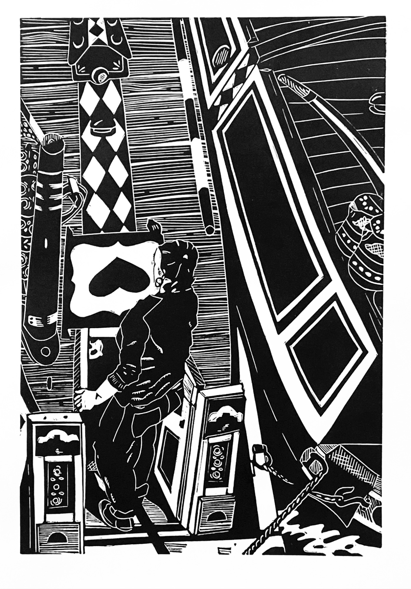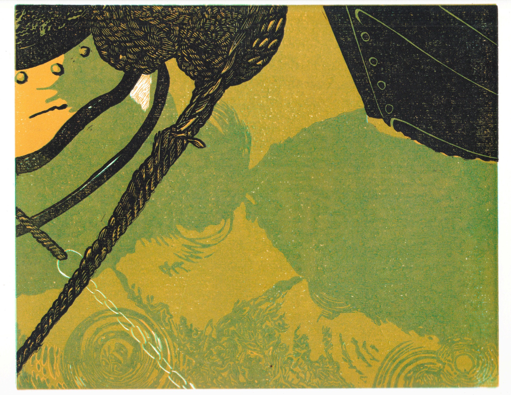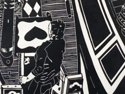 Charlotte's work often uses the rediction method of linocut to include many colours in her prints, as well as enjoying the contrast of simple but striking monochrome.